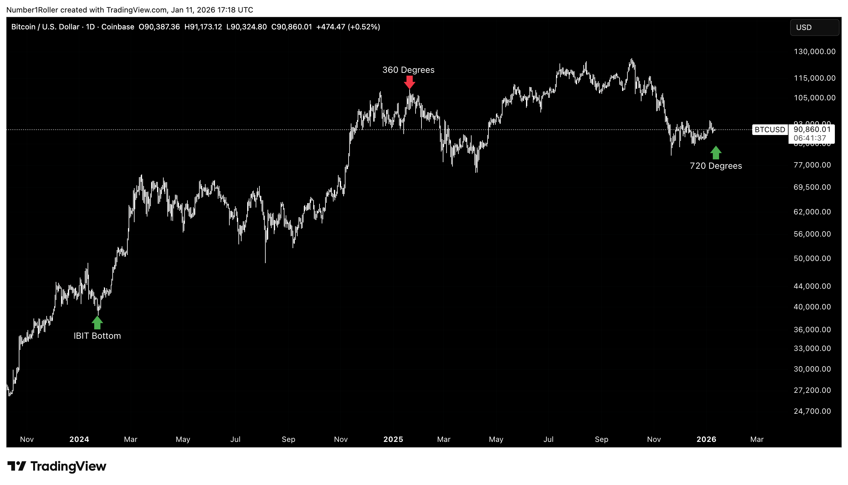 The Degree Date: It is exactly 720 days (360 x 2) from the all-time low of the IBIT (Bitcoin ETF).
