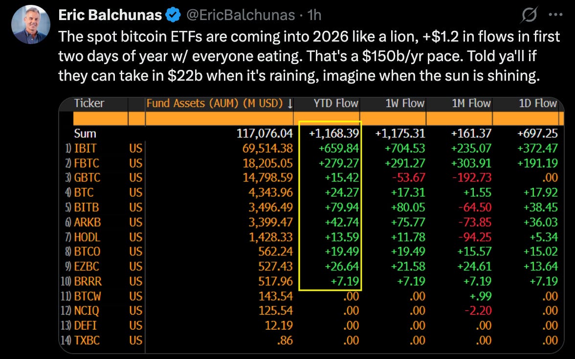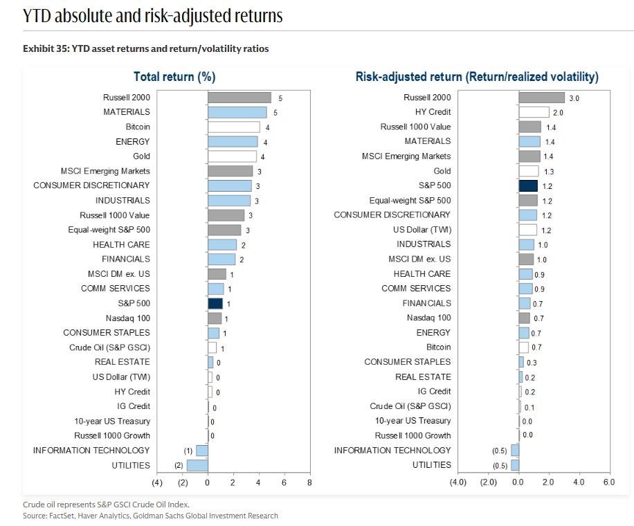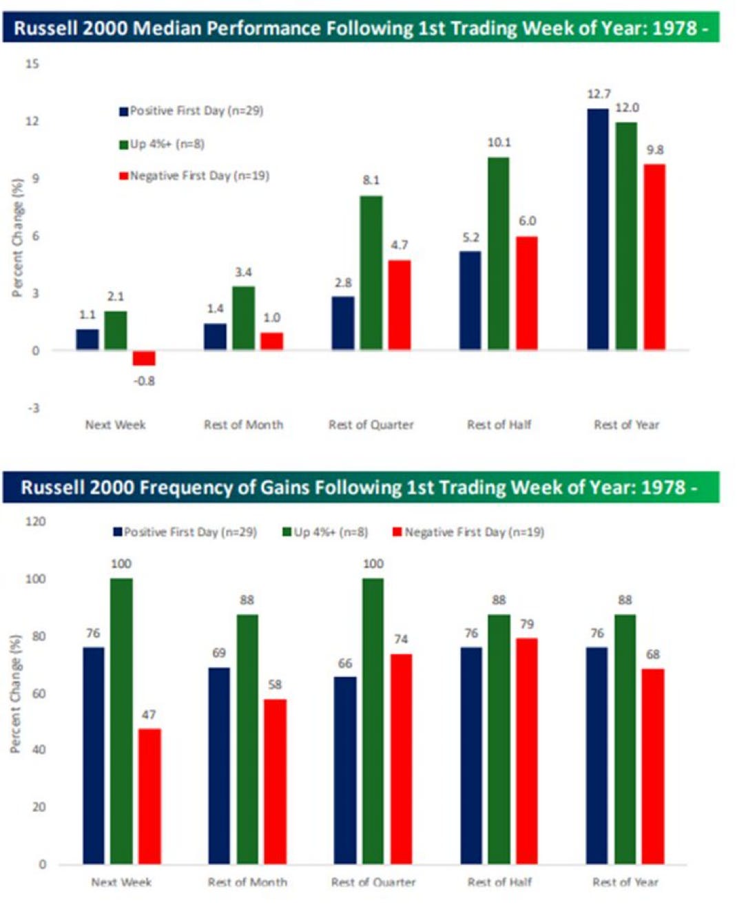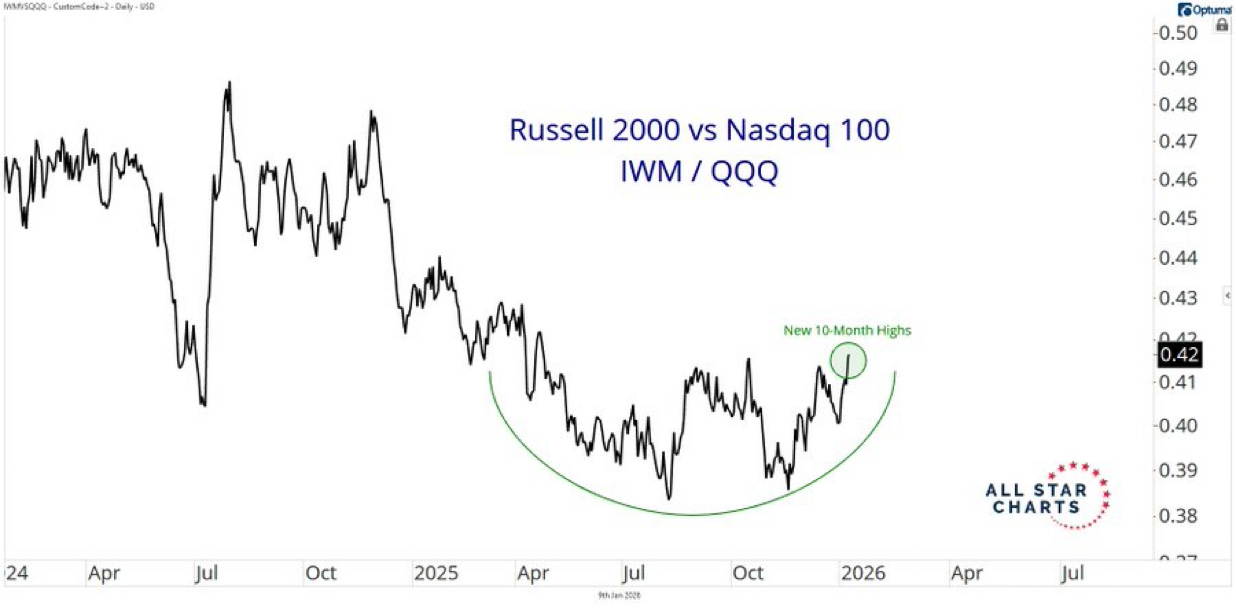 Early Leaders Continue Winning: IWM and BTC are leading the year (+5.7% for IWM already). Tech and the Mag 7 are the laggards. This is the Great Rotation we’ve been calling for months.