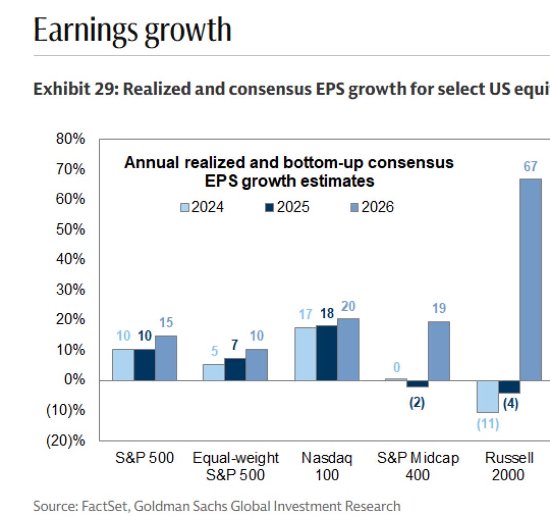 Russell 2000 (IWM): GS projects EPS +67% this year. Earnings growth drives stock prices. Period.