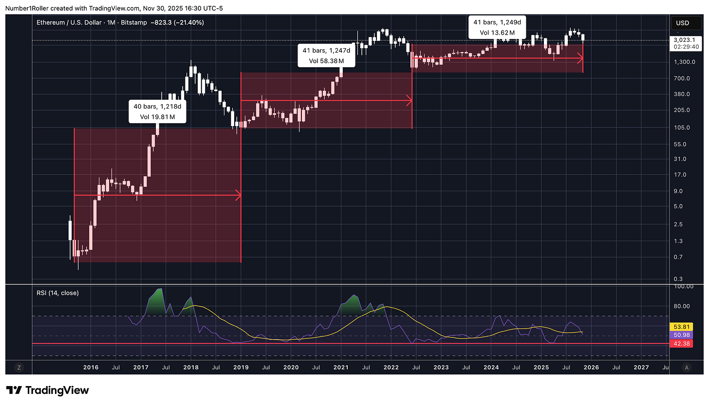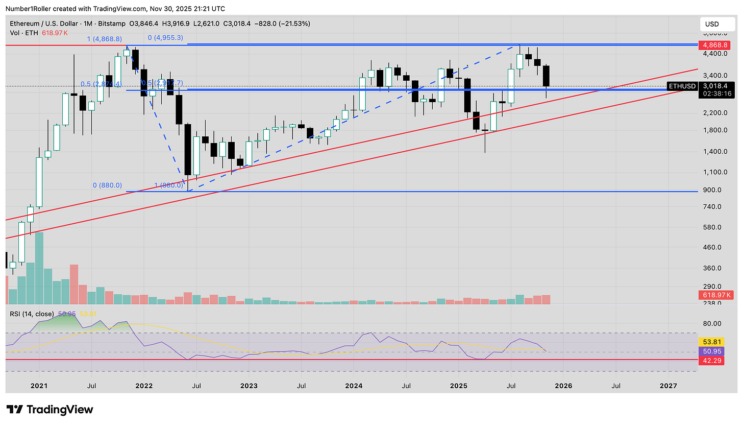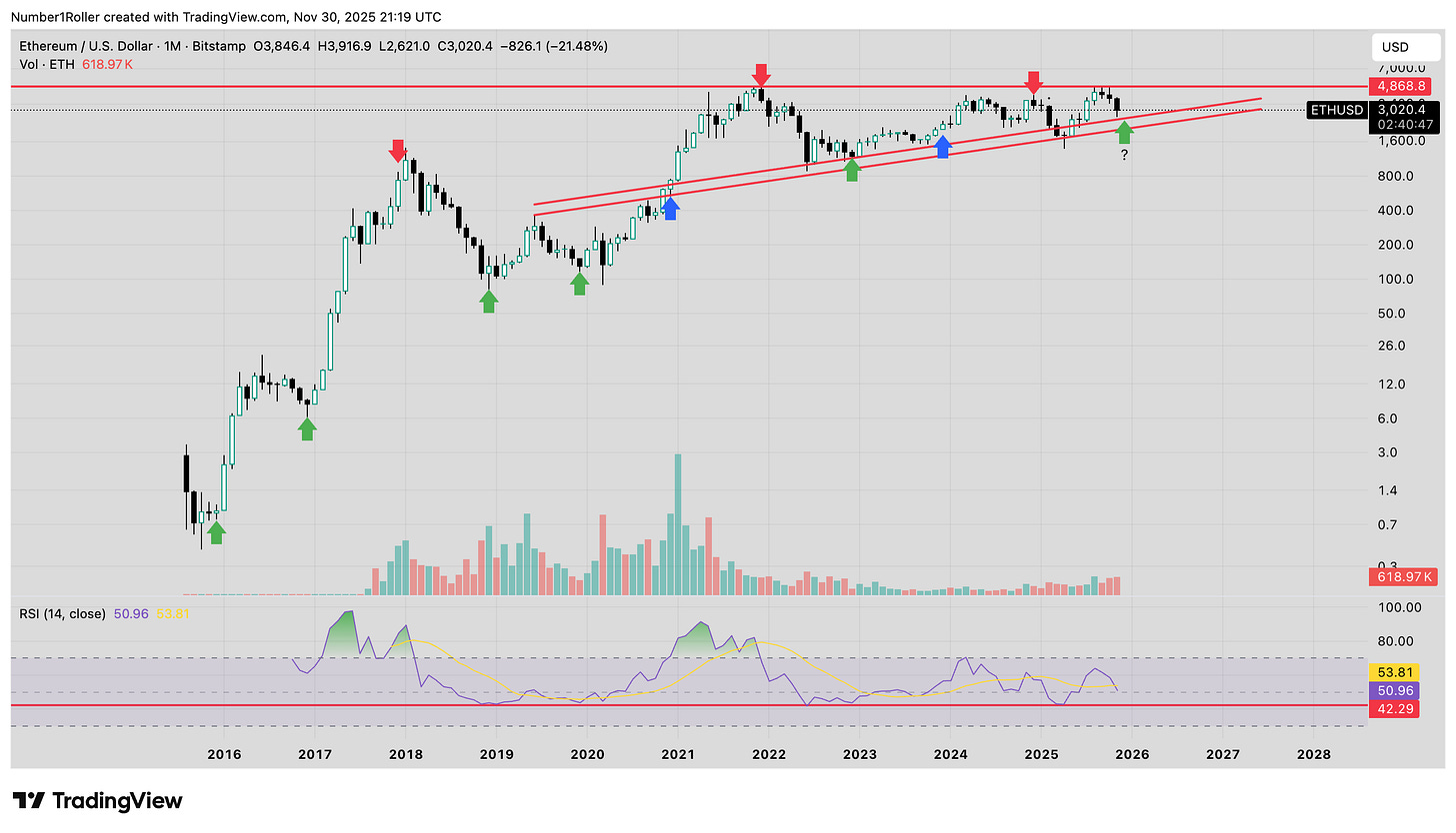 Starting with a high level monthly view of ETH cycles and then zooming into the current picture will show why the month of December likely holds a key reversal moment.